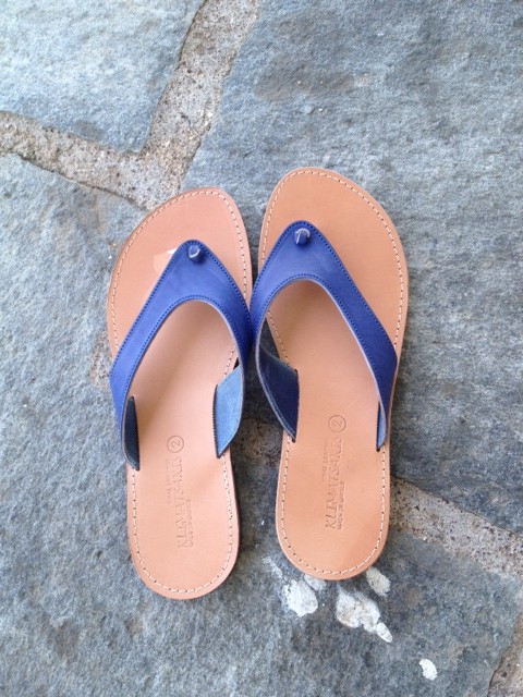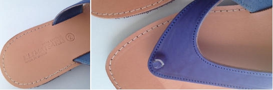 一点一点丁寧に作られたメイドインギリシャのサンダル、革本来の風合いを大切にした仕上げになっており履きこむほどに味わい深くなっていきます。ソールはステッチでしっかり固定されています。ブルーの鼻緒がアクセント*