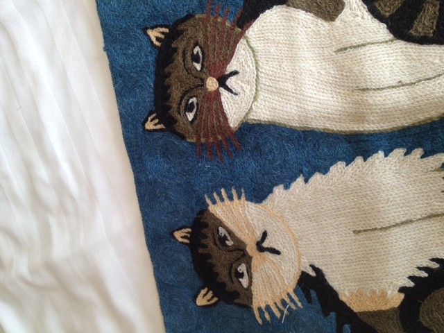 エーゲ海と神話の国、ギリシャからハンドメイドのお土産が届きました。可愛いロバと猫の2種類の柄です、お部屋のアクセントにいかがですか?ギリシャ独特の図柄です。寒い冬のシーズンにはほっと暖かさを感じる風合いです。縫製もしっかりしています。
